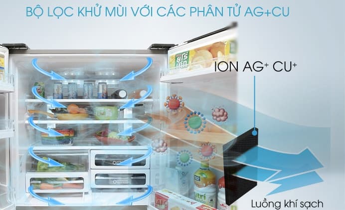 Tủ lạnh Sharp inverter 532 lít SJ-SBX530V-DS với công nghệ độc quyền PCI dựa trên các hoạt động của Ion dương, Ion âm để vô hiệu hóa tất cả các chất có hại bên trong tủ như các vi khuẩn, bào tử nấm mốc… Bên cạnh đó, bộ lọc Nano Ag+ có khả năng lọc sạch mọi mùi hôi đem đến sự trong lành, tinh khiết cho không khí giúp thực phẩm được bảo quản tốt nhất, sạch khuẩn, an toàn vệ sinh, bảo vệ sức khỏe người tiêu dùng.